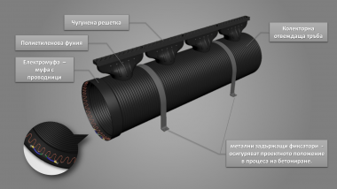 - Поставен в чакълесто легло или еднозърнест бетон, фасадните улеи с двустранна перфорация провеждат акумулиранат дъждовна вода от повърхността, както и подпочвената от конденза по хидроизолацията ретензионно към земята в дълбоична.